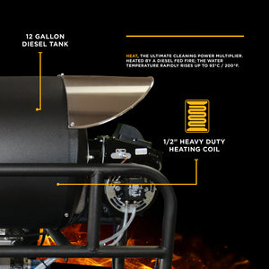 Designed for extreme duty cleaning and single fuel operation for both the engine and burner. The